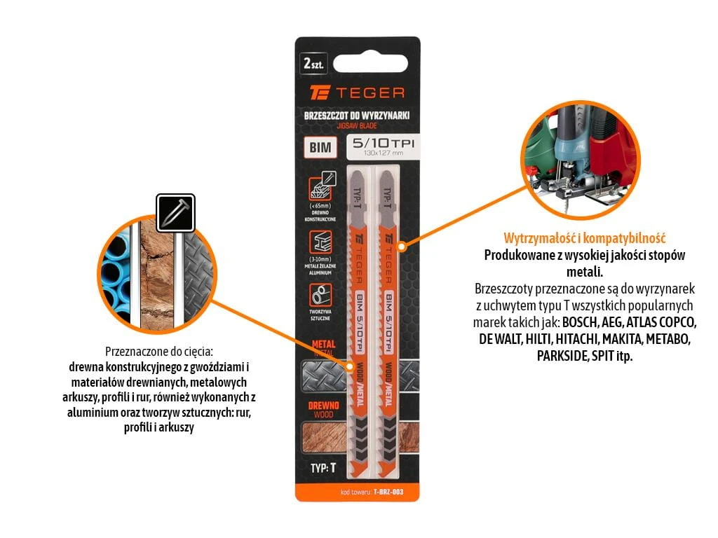 Brzeszczot do wyrzynarki - Typ: T - METAL/DREWNO (2szt) / TEGER