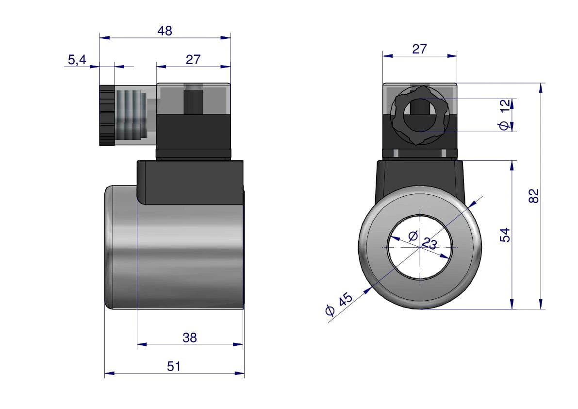 Cewka dzielnika elektrozaworu W-E38DVS6/2, W-E12DVS6/2  12V DC 30W w komplecie z wtyczką (z diodą) do cewki Waryński