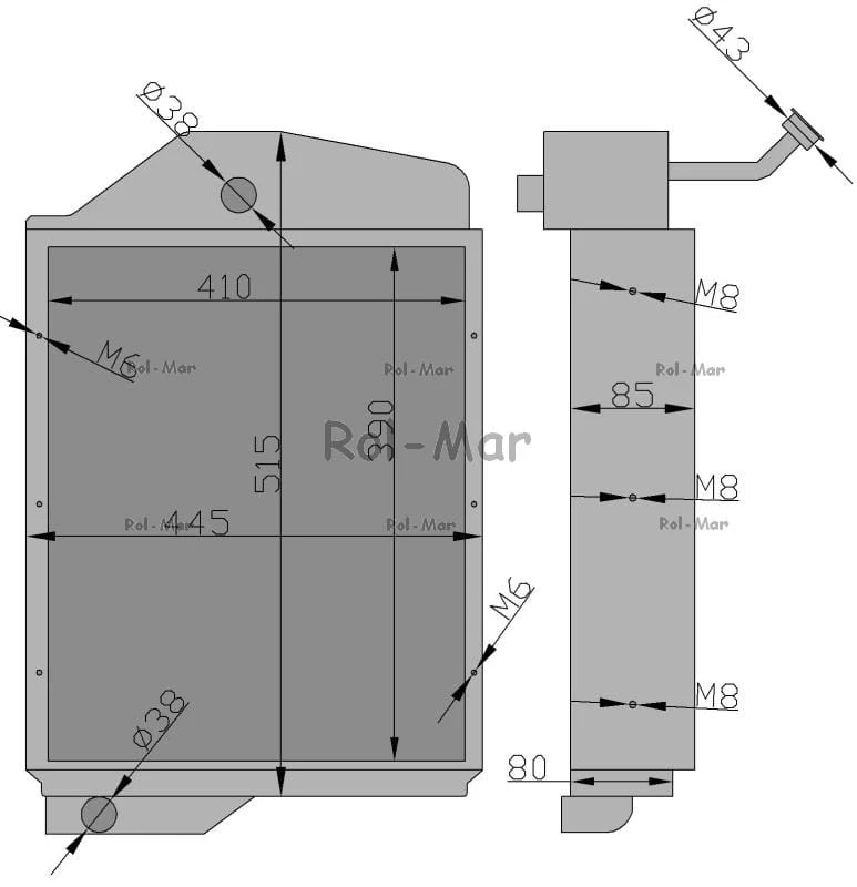 Parametry techniczne: Wysokość: 520 mm (od dolnej podstawy do korka) Szerokość: 450 mm Grubość: 90 mm Średnica przewodów: Ø 32 mm - wykonana w całości z miedzi (oprócz mocowań) - zwiększona zdolność odprowadzania ciepła - odporna na korozję