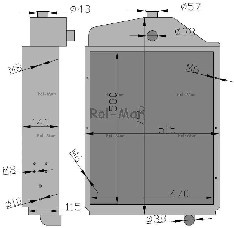 Chłodnica miedziana n.typ boczne mocowanie (6-cylindry) C-385