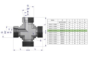 Czwórnik hydrauliczny metryczny BBBB M18x1.5 12L Waryński. Elementy złączne zostały zaprojektowane i wykonane zgodnie z obowiązującymi normami, które szczegółowo opisują wymagania jakościowe i wymiarowe. Są kompatybilne z elementami złącznymi innych renomowach producentów hydrauliki siłowej.