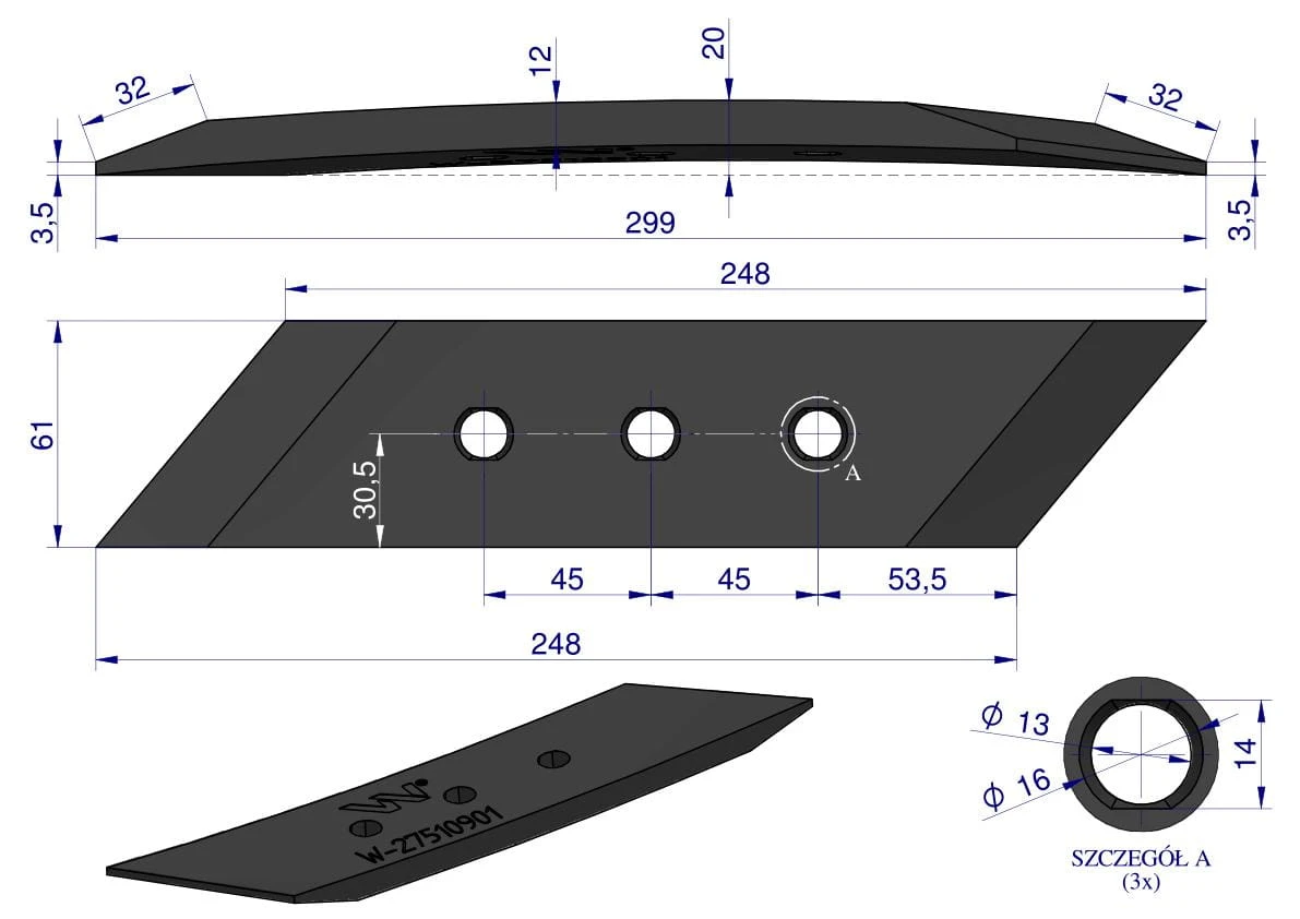 Dłuto. nakładka prawe zastosowanie MP350 Rabe Werk stal borowa Waryński