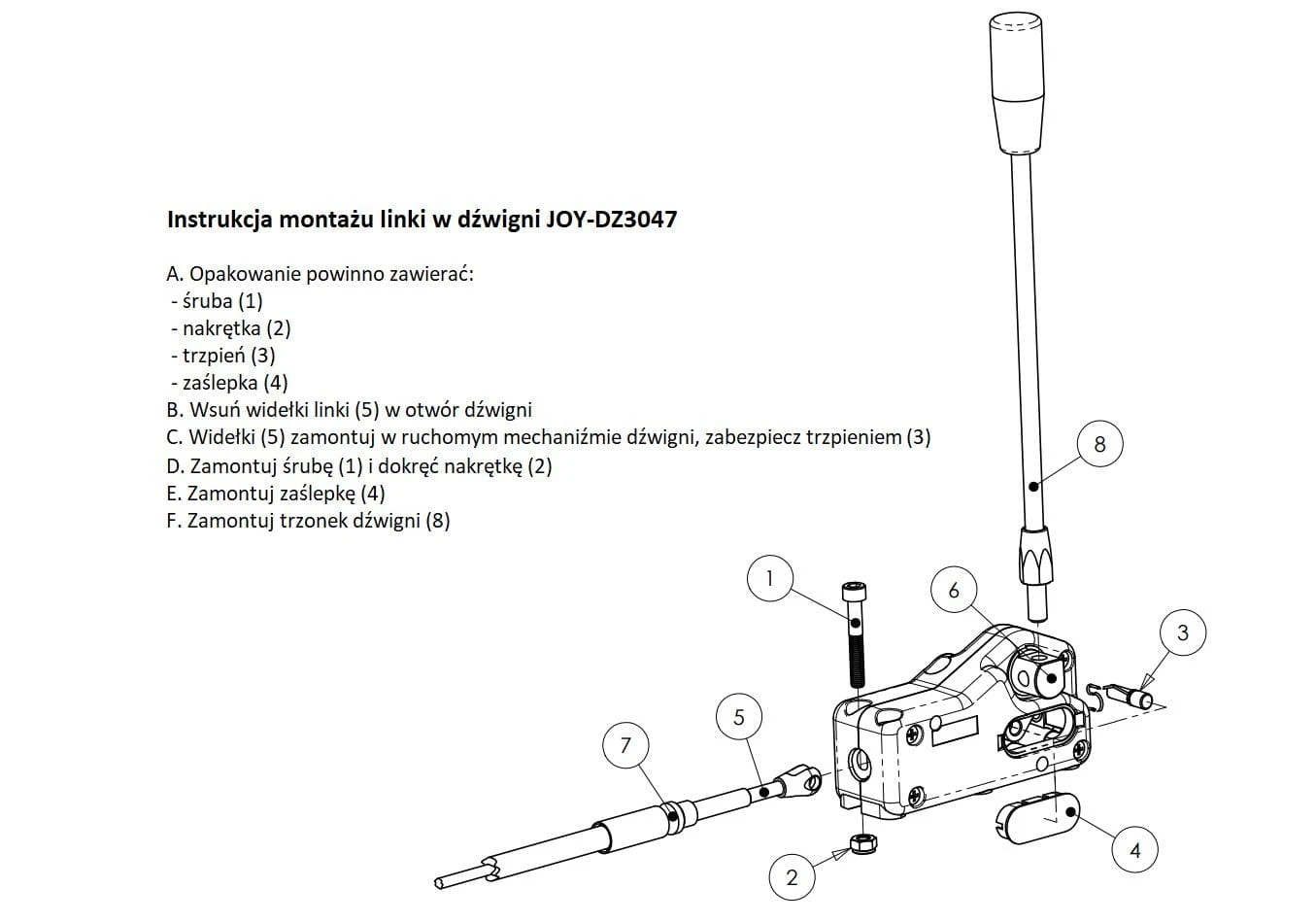 Dźwignia 3047 do sterowania rozdzielaczem hydraulicznym (na linki. widełki)