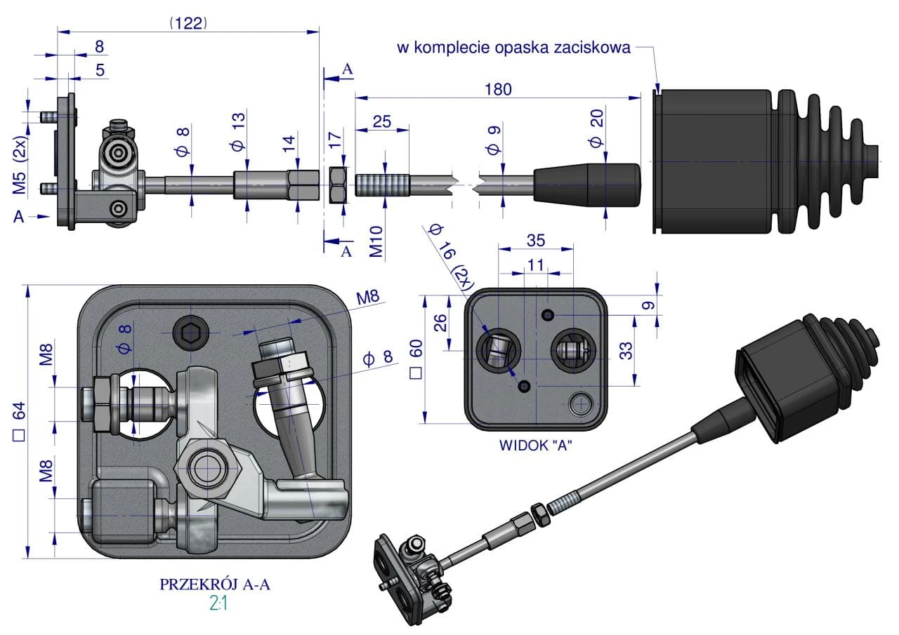 Joystick przyłączeniowy bez przycisku do rozdzielaczy hydraulicznych 40L Waryński