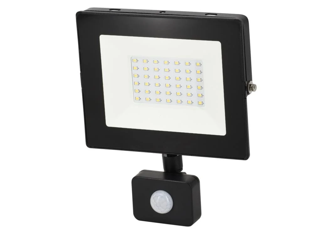 Naświetlacz, Lampa LED SMD 230V 30W 6500K 2550LM IP65 CZARNY Z CZUJNIKIEM RUCHU