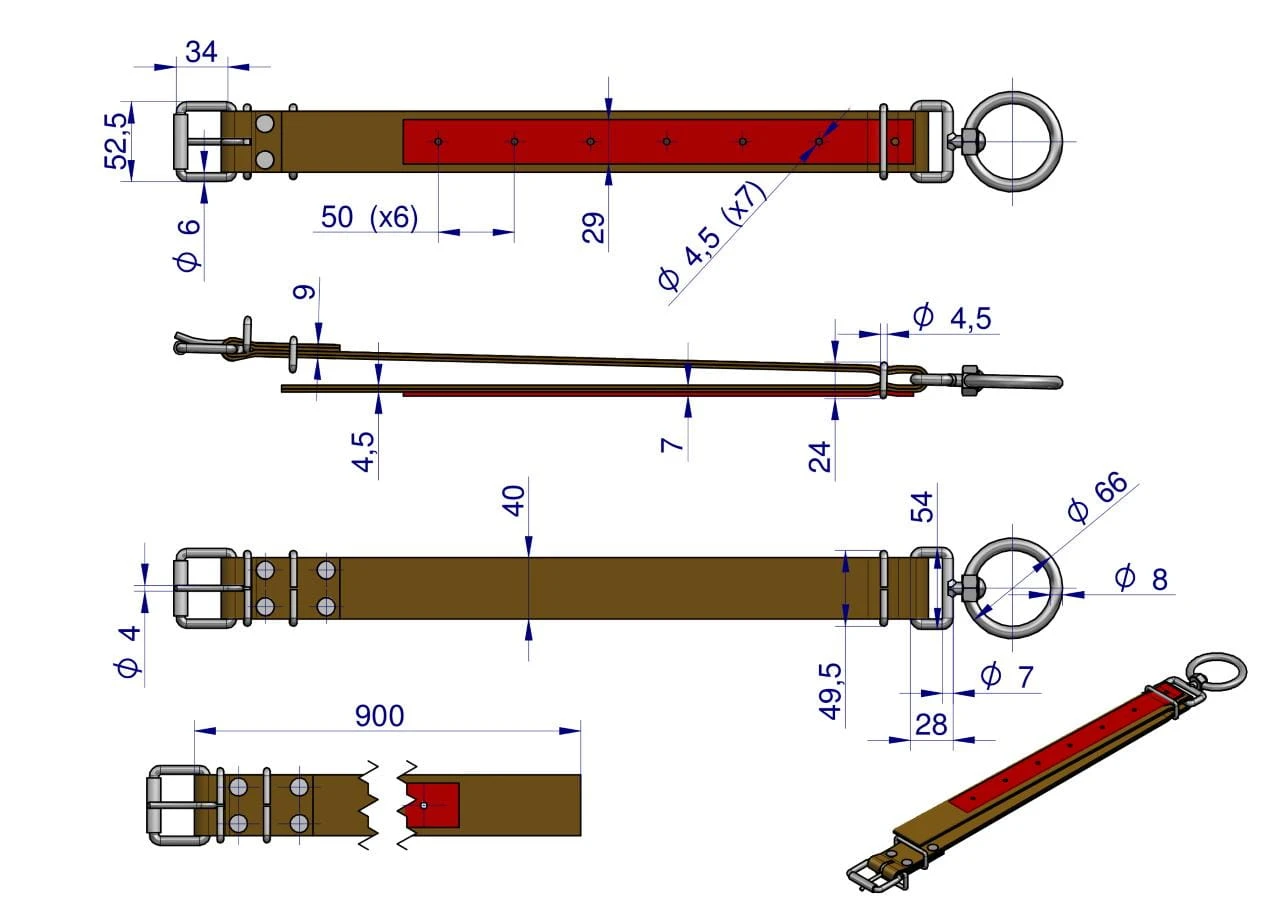 Obroża, 90 cm x 4 cm z okrętką 8 mm i rolką na klamrze, Royal Farm