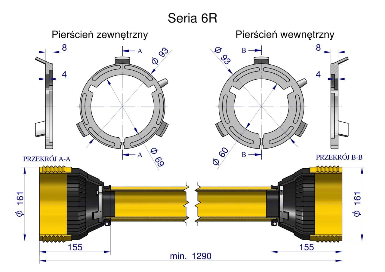 Obudowa wału przegubowo-teleskopowego Uniwersalna długość Seria 6R Waryński