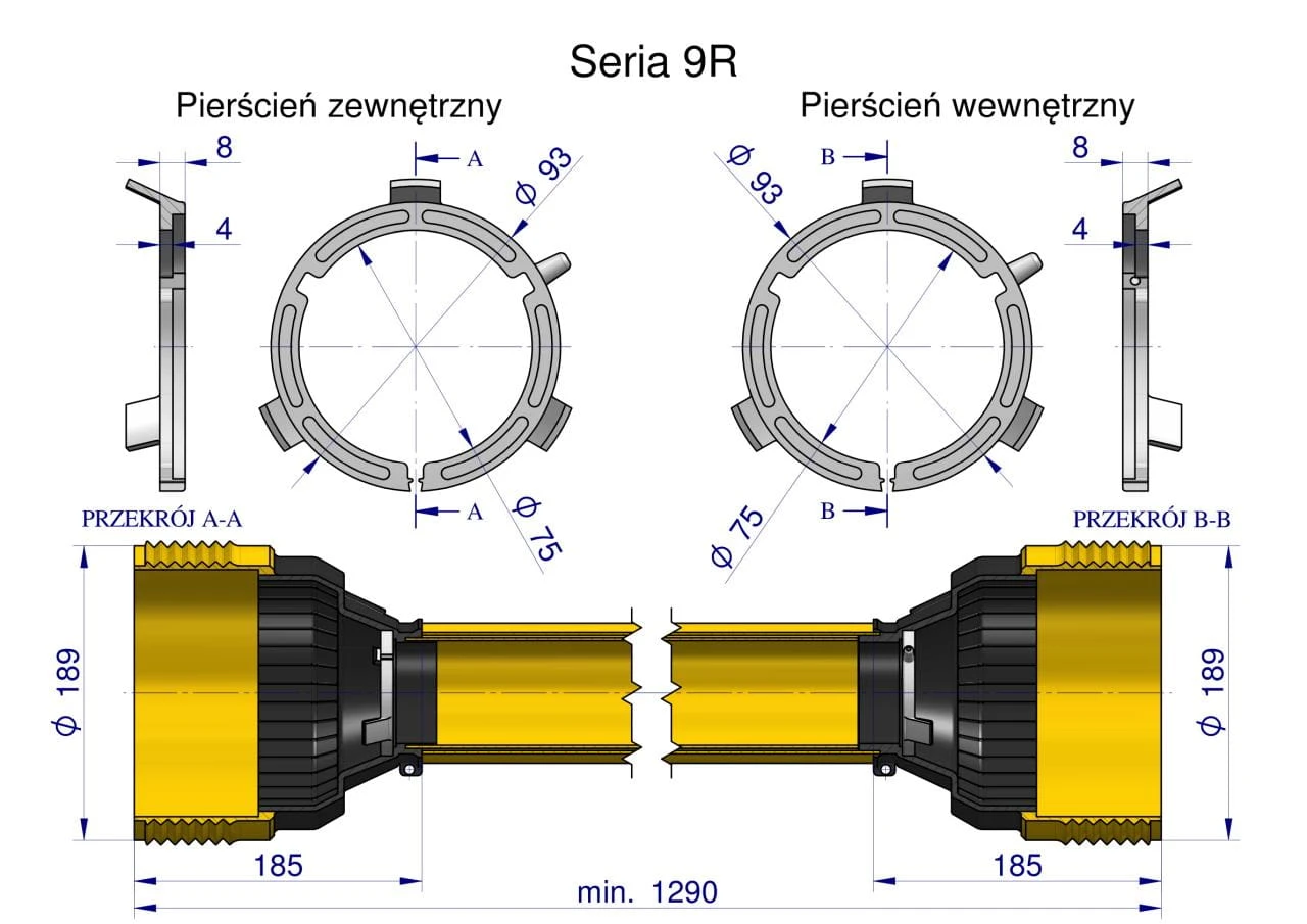 Obudowa wału przegubowo-teleskopowego Uniwersalna długość Seria 9R Waryński