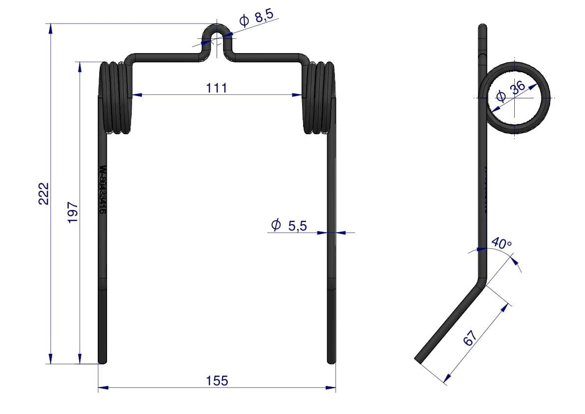 Palec sprężysty nagarniacza motowideł zastosowanie New Holand 80433415 Waryński