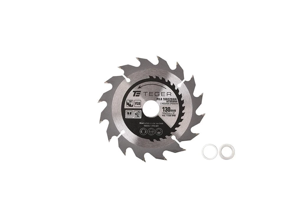 Piła tarczowa do drewna z węglikiem spiekanym 130x20x16T / TEGER przeznaczona do cięcia wzdłużnego i poprzecznego drewna litego, sklejki, płyt wiórowych, płyt laminowanych i MDF, materiałów drewnopodobnych i kompozytowych. Zęby widiowe z węglikiem spiekanym zapewnia długą żywotność tarczy przy intensywnej pracy.