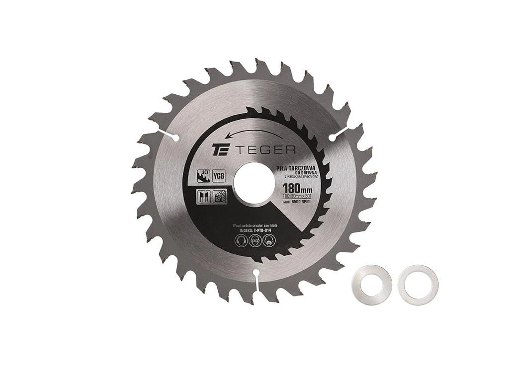 Piła tarczowa do drewna z węglikiem spiekanym 180x30x30T / TEGER przeznaczona do cięcia wzdłużnego i poprzecznego drewna litego, sklejki, płyt wiórowych, płyt laminowanych i MDF, materiałów drewnopodobnych i kompozytowych. Zęby widiowe z węglikiem spiekanym zapewnia długą żywotność tarczy przy intensywnej pracy.