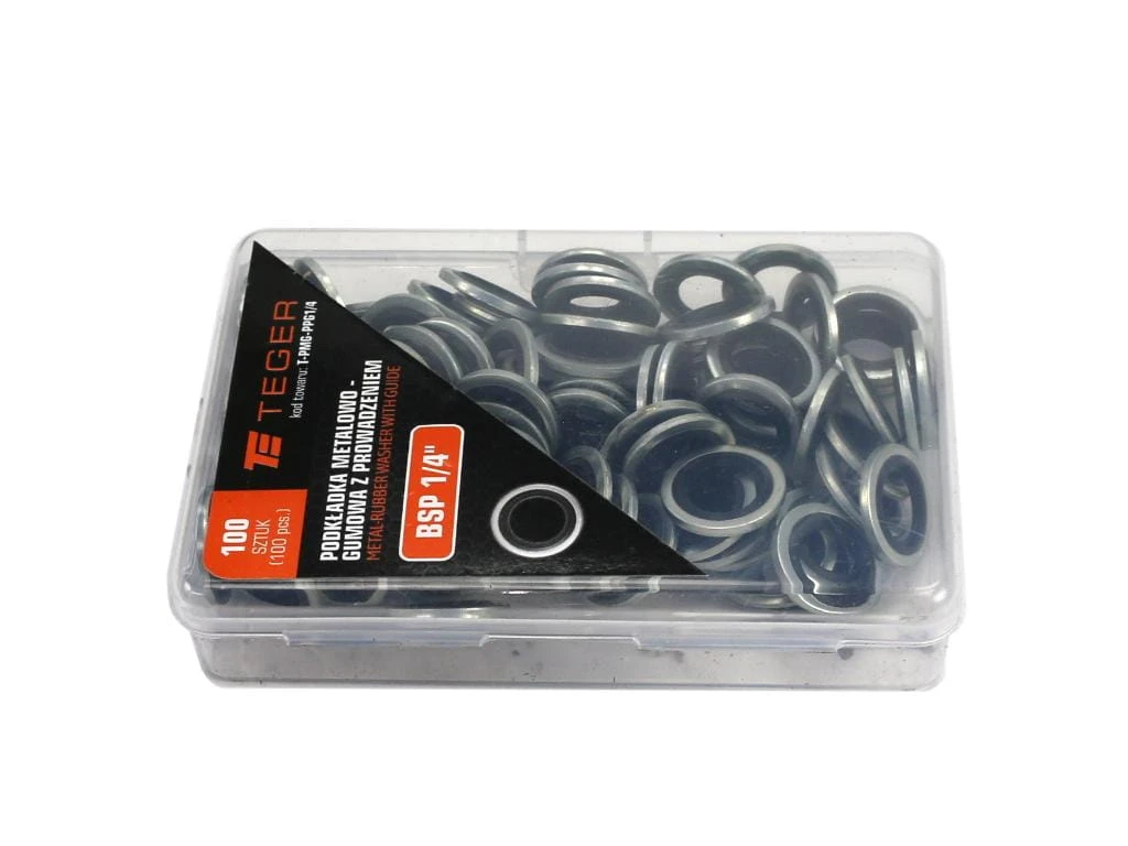 Podkładka metalowo gumowa z prowadzeniem BSP 1/4" TEGER ( sprzedawane po 100 )