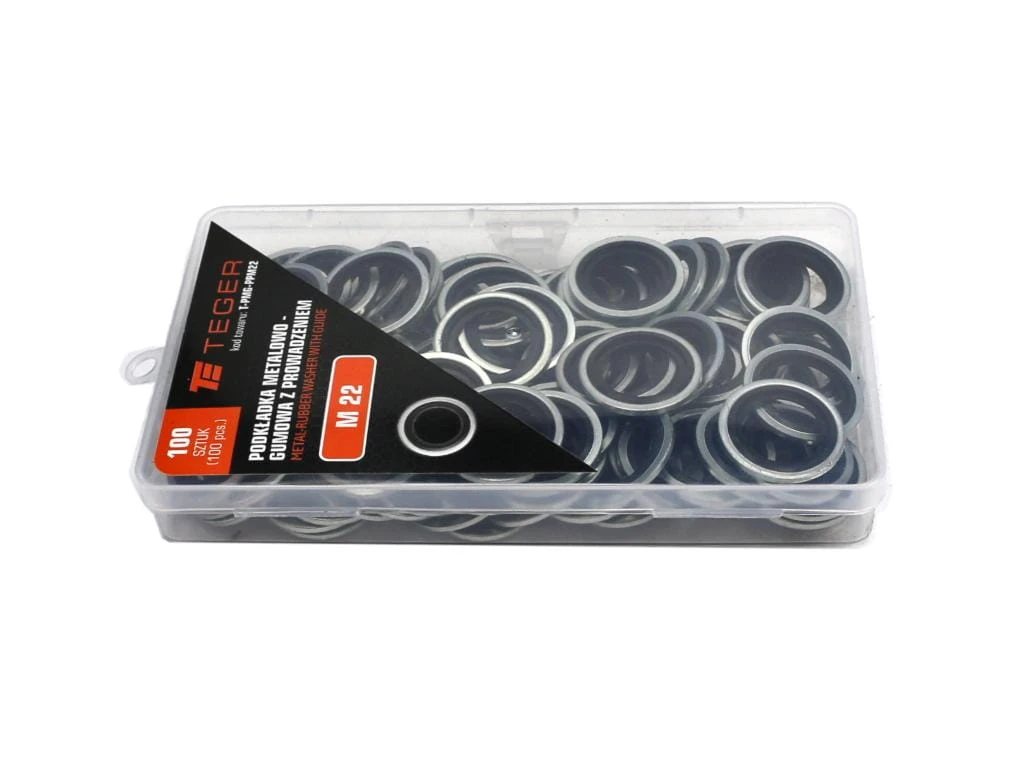 Podkładka metalowo gumowa z prowadzeniem M22 TEGER ( sprzedawane po 100 )
