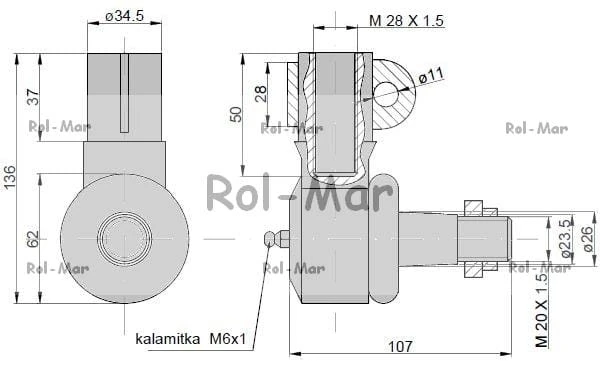 Przegub kierowniczy 105mm - M28x1,5 3599679M91 Massey Ferguson TAQ