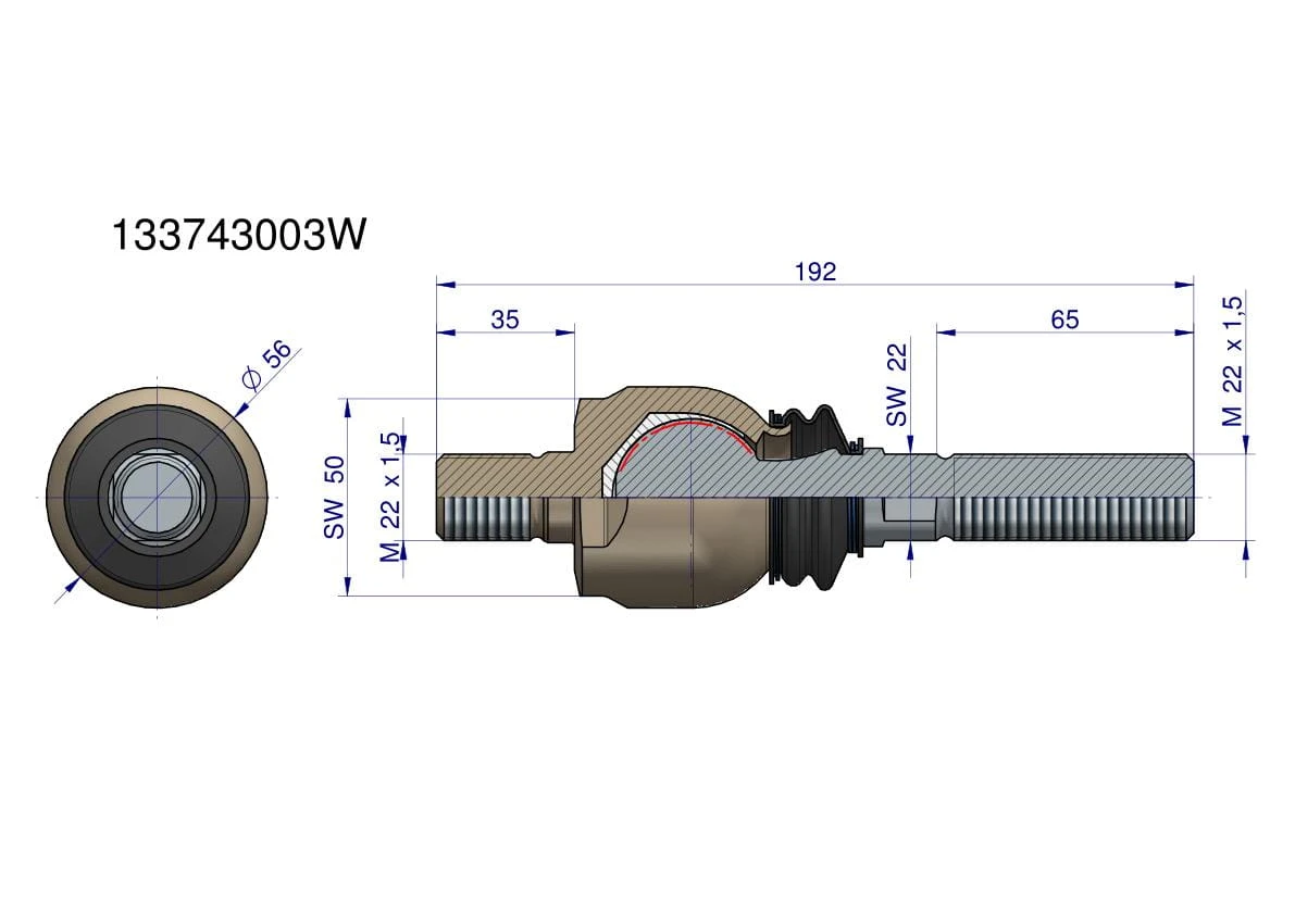Przegub kierowniczy 192mm - M22x1,5 ; M22x1,5 133743003 WARYŃSKI