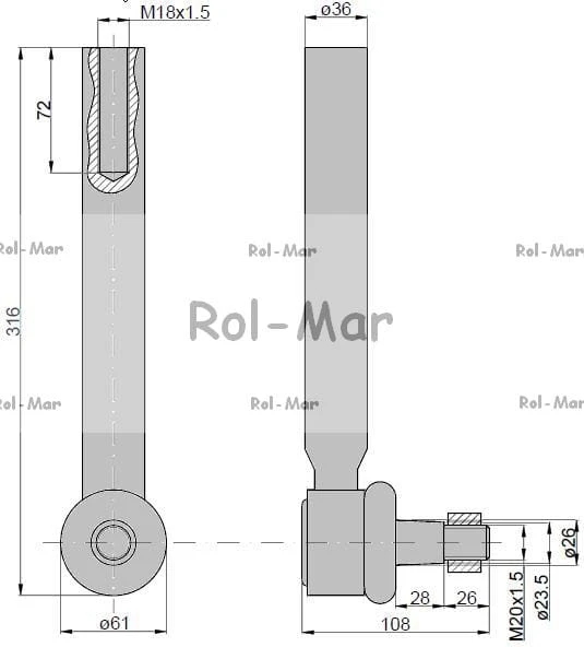 Przegub kierowniczy 285mm - M18x1,5 3764028M2 Massey Ferguson TAQ