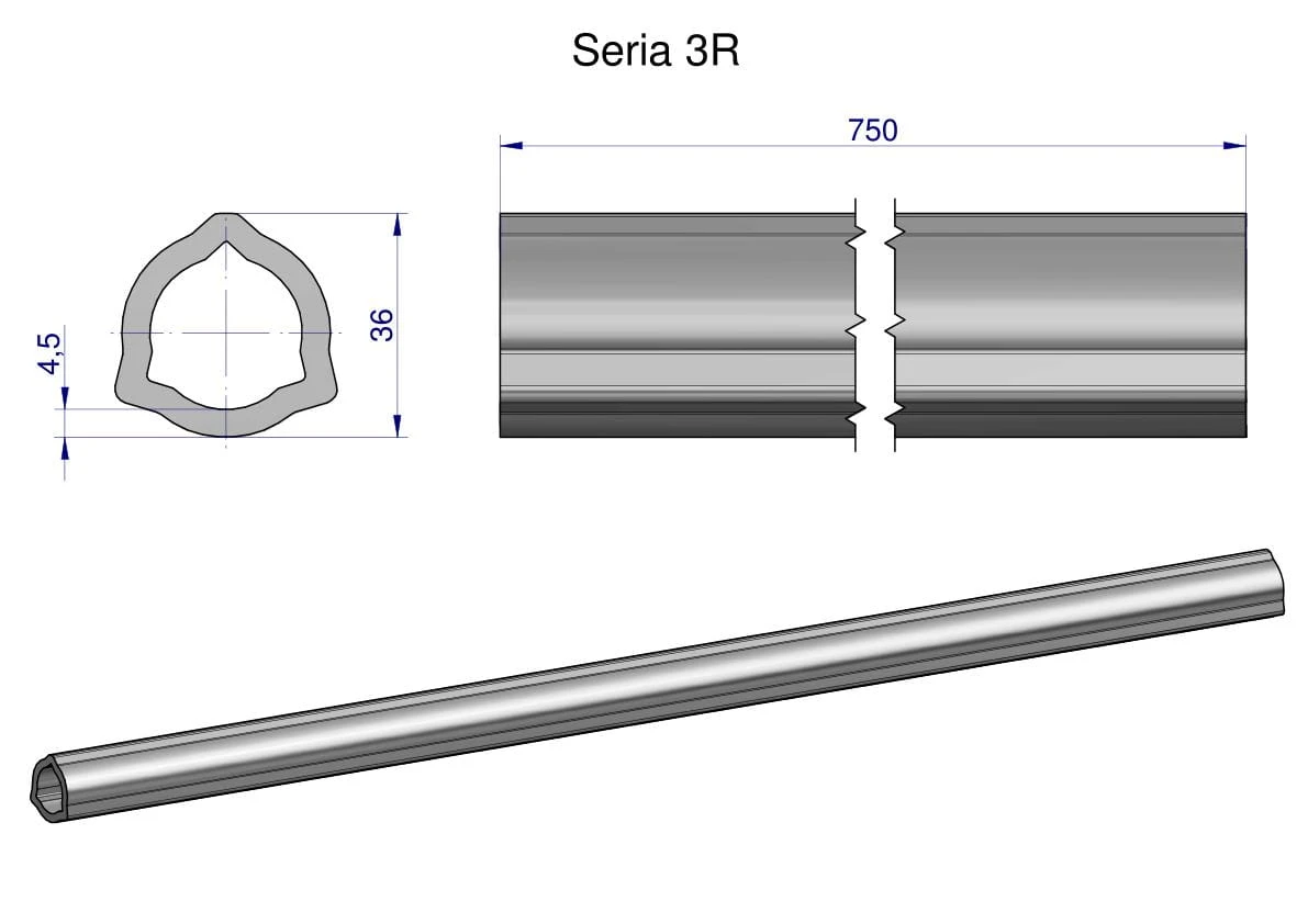 Rura wewnętrzna Seria 3R do wału 910 przegubowo-teleskopowego 36x4.5 mm 755 mm WARYŃSKI