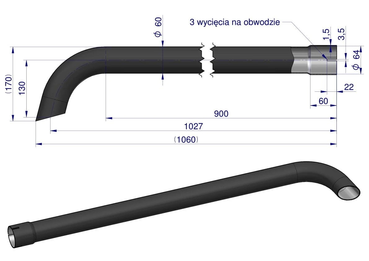Tłumik pierwszy układu wydechowego zabezpieczony został farbą na bazie żywicy modyfikowanej silikonem odpornej na temperatury do 900 stopni ,wykonany z blachy aluminiowej DX53 + 120AS ,która odporna jest na korozję .Trwałe widoczne oznakowanie. UWAGA! Użyta na tłumikach farba potrzebuje wygrzania aby stać się jednolita. Po montażu do ciągnika i rozgrzaniu tłumika znikną drobne ryski i otarcia ,gwarantujemy jakość naszych produktów.