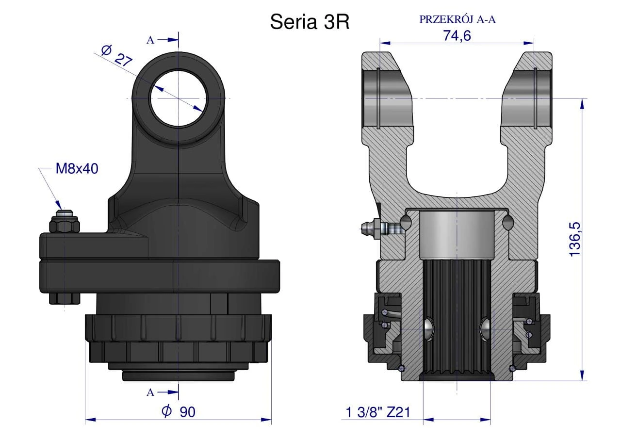 Sprzęgło na kołek wału Seria 3R 1700Nm - 27x75 - 1 3/8 Z21 WARYŃSKI