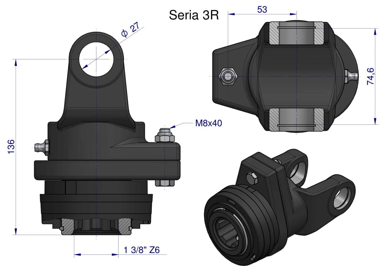 Sprzęgło na kołek wału Seria 3R 1700Nm - 27x75 - 1 3/8 Z6 WARYŃSKI
