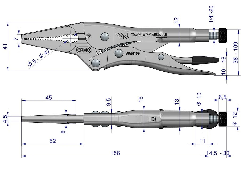 Szczypce zaciskowe Morsa z utwardzanej stali CrMo 6" z wydłużonymi szczękami Waryński