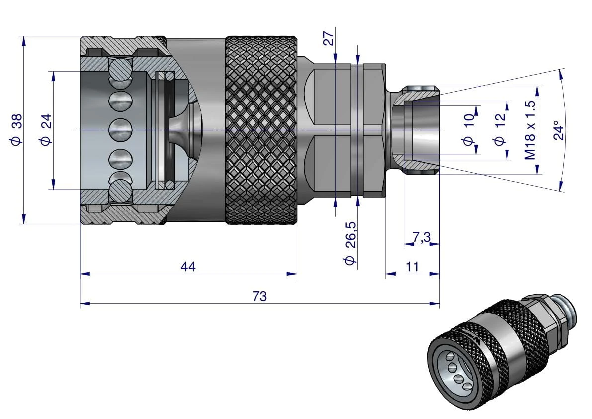 Szybkozłącze hydrauliczne gniazdo M18x1.5 gwint zewnętrzny EURO PUSH-PULL (9100818G) (ISO 7241-A) Waryński (opakowanie 50szt)