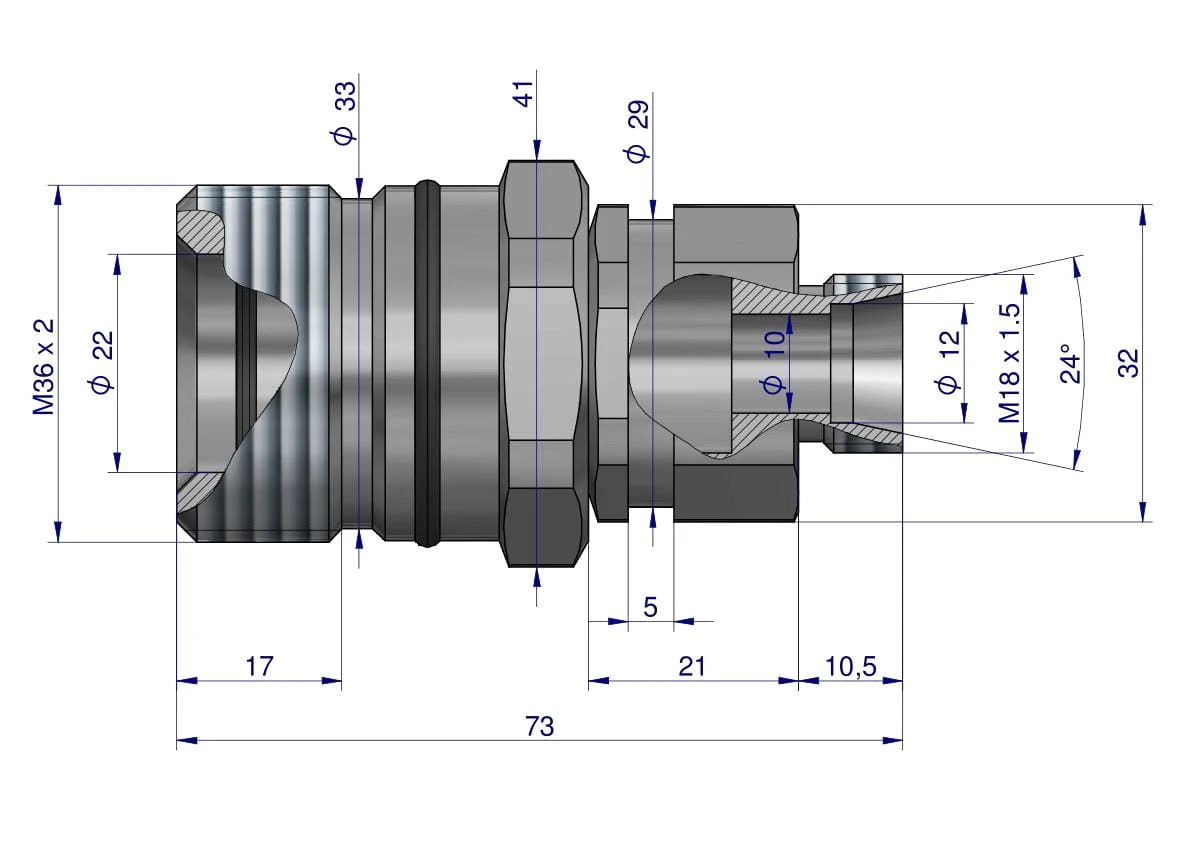 Szybkozłącze hydrauliczne skręcane gniazdo M18x1.5 gwint zewnętrzny 300bar Waryński