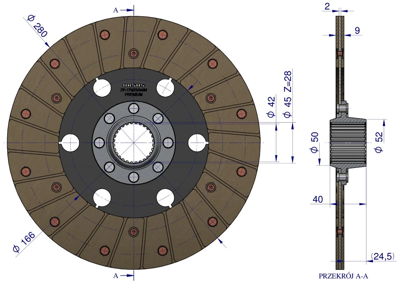 Tarcza sprzęgłowa w marce Ursus to produkt najwyższej jakości. Tarcza Sprzęgłowa jest jednym z najważniejszych elementów układu przeniesienia napędu. Odpowiada za przekazanie momentu obrotowego z koła zamachowego na wałek sprzęgłowy skrzyni biegów. Jednym z zadań tarczy sprzęgła jest również redukcja i tłumienie drgań przenoszonych obciążeń. Tarcza sprzęgłowa premium wyróżnia się dłuższą żywotnością zwiększoną o 30%, posiada zwiększoną liczbę nitów piasty, zostały również zmienione nity okładziny z aluminiowych na miedziane. Okładzina posiada więcej włókien, które wydłużają jej żywotność. Każdy produkt posiada 5 letnią żelazną gwarancję.