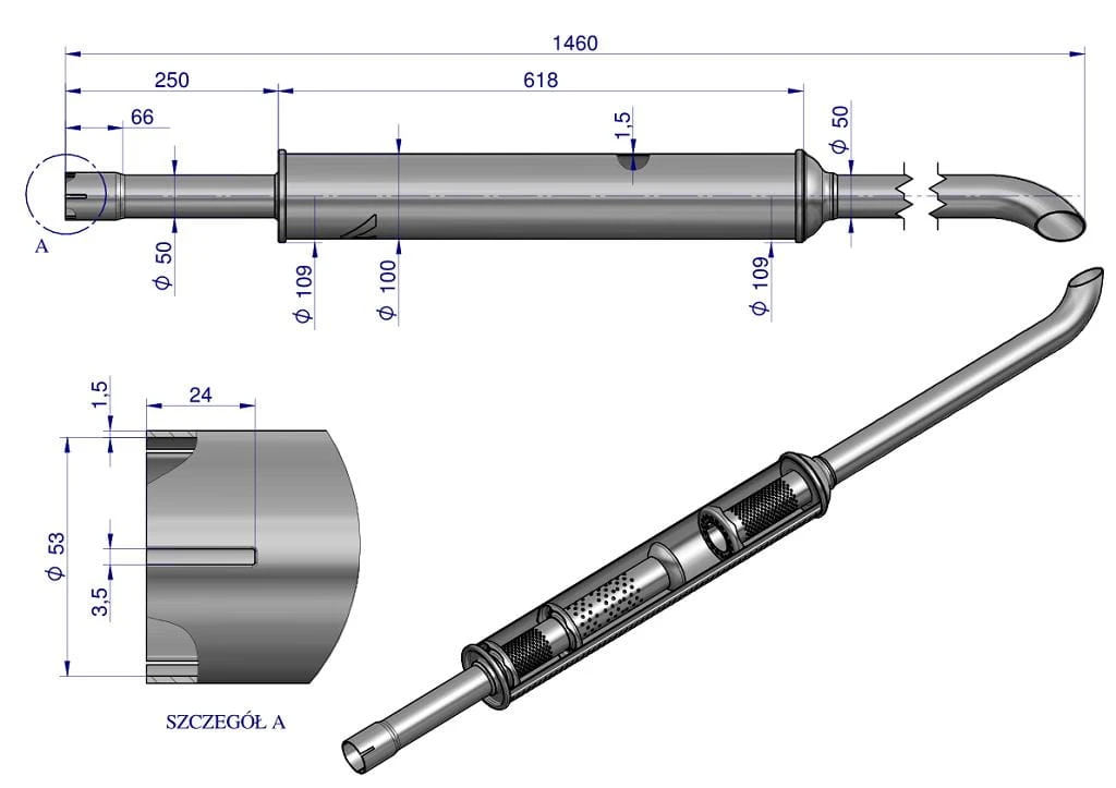 Tłumik 1460mm 5.6kg MF3 INOX WARYŃSKI