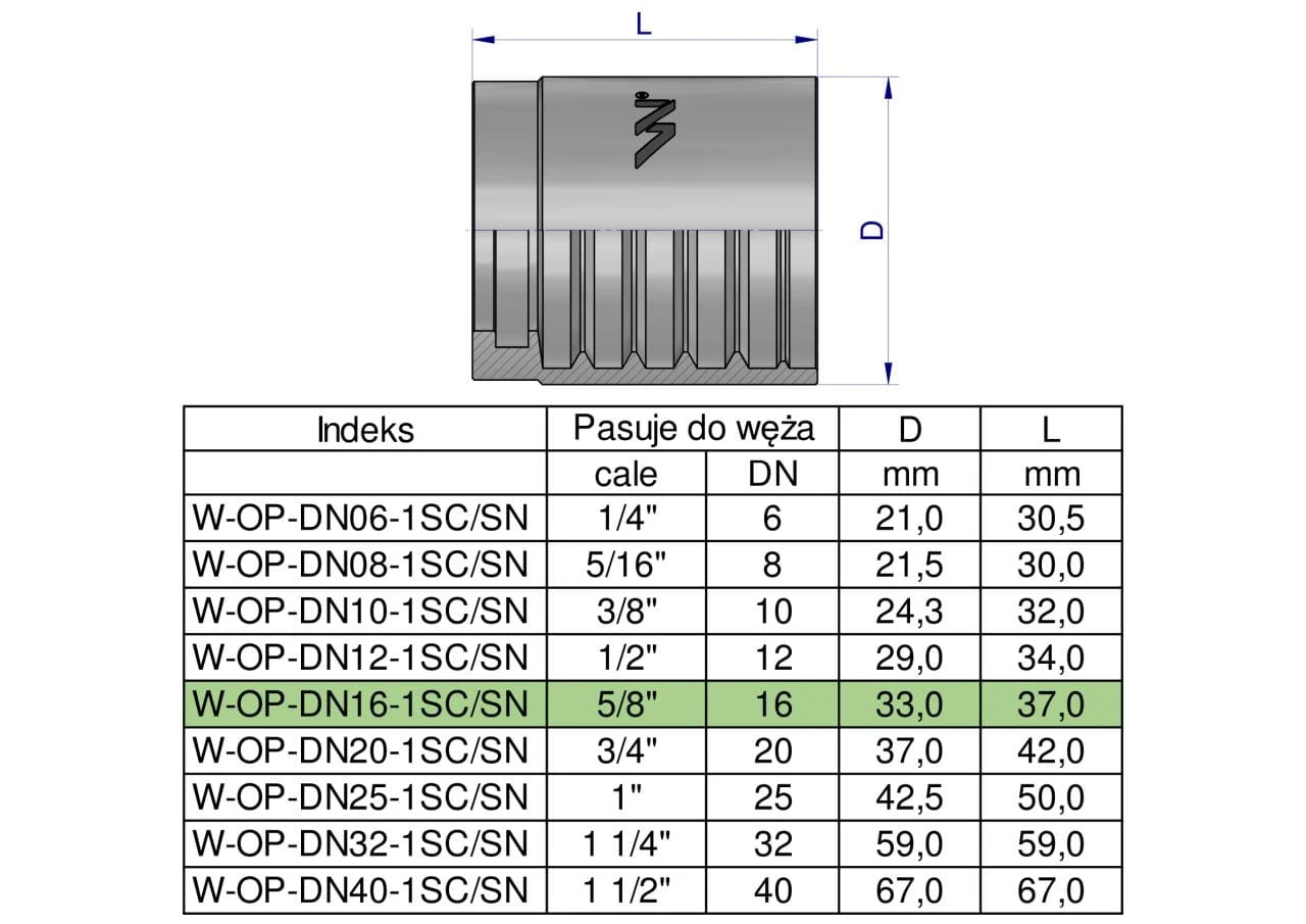 Tuleja (oprawka) DN 16 1SN do węży i zakuć hydraulicznych PREMIUM Waryński