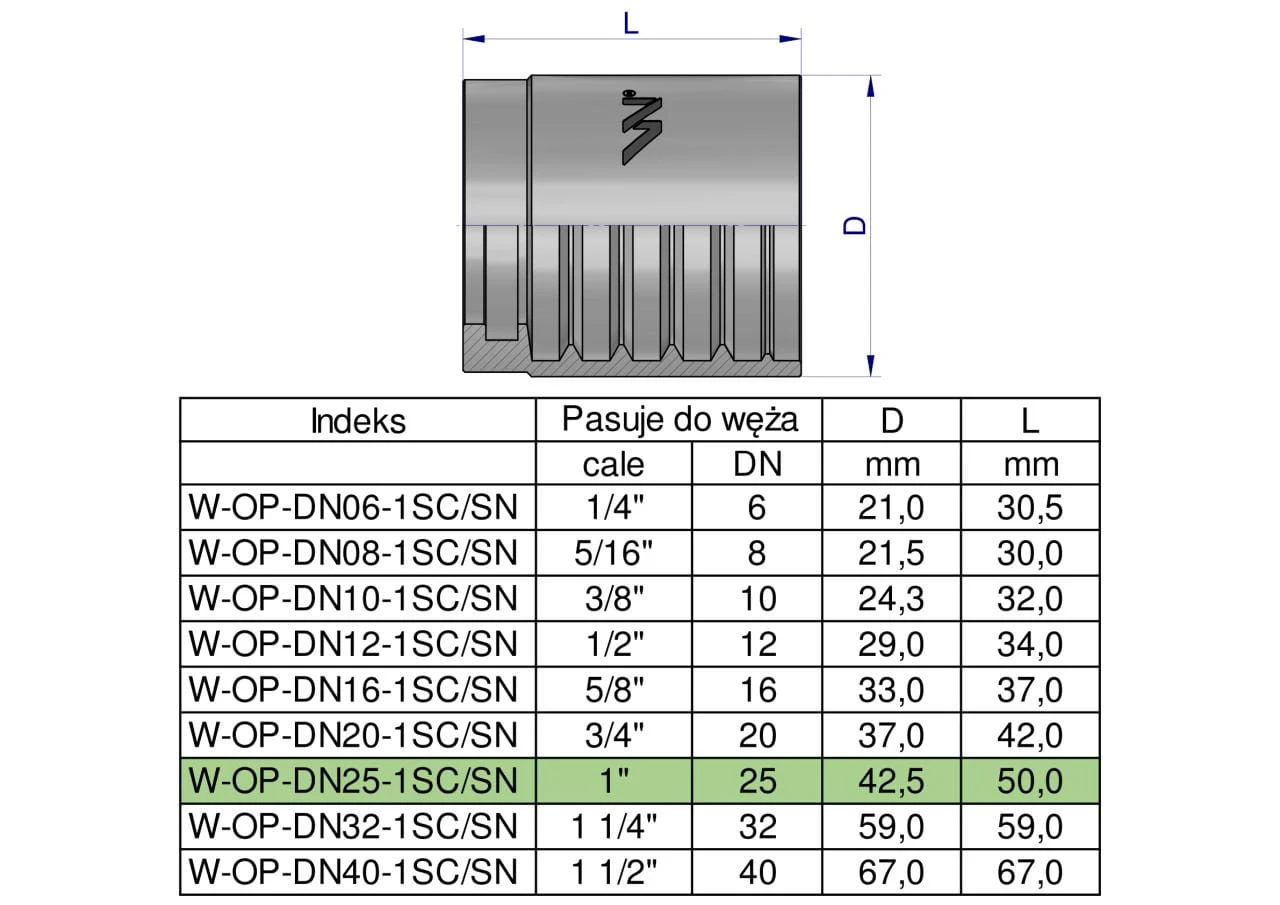 Tuleja (oprawka) DN 25 1SN do węży i zakuć hydraulicznych PREMIUM Waryński