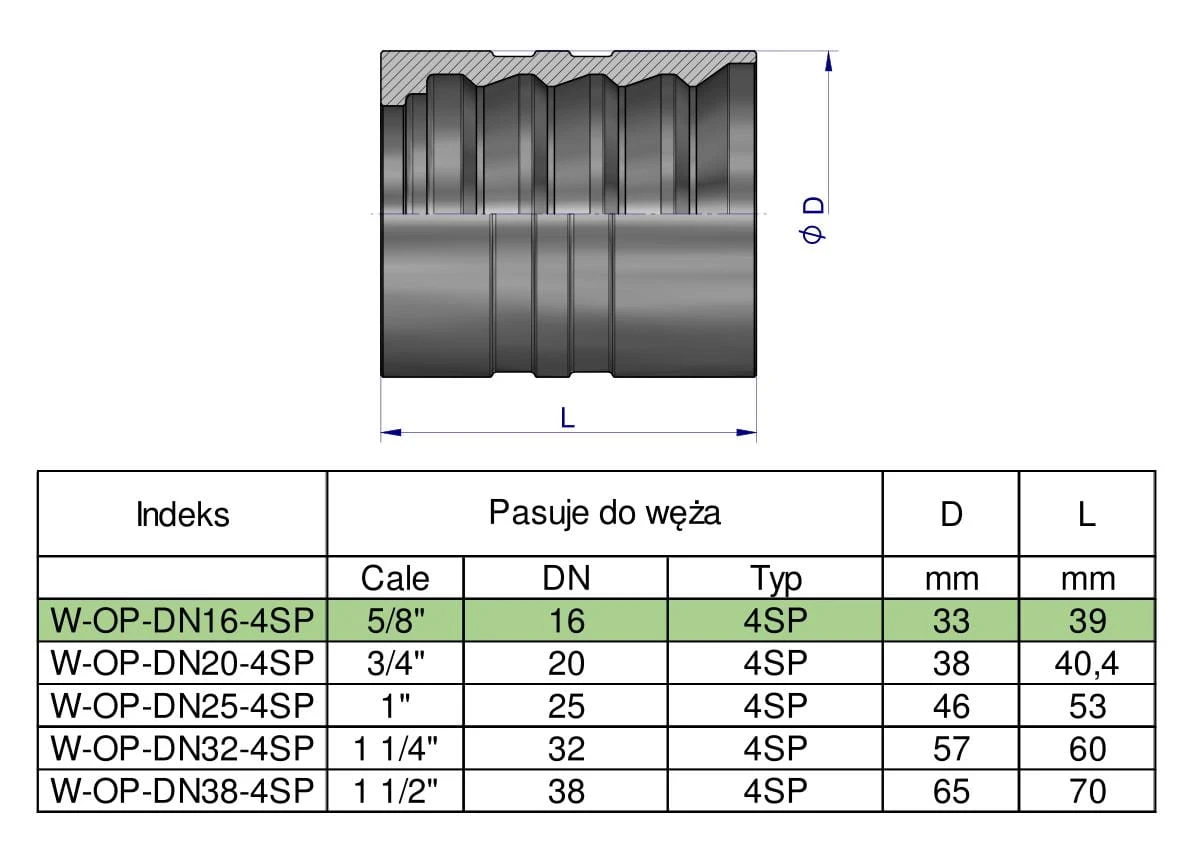 Tuleja (oprawka) do węży 4-oplotowych DN16 4SP GRANDMASTER Waryński
