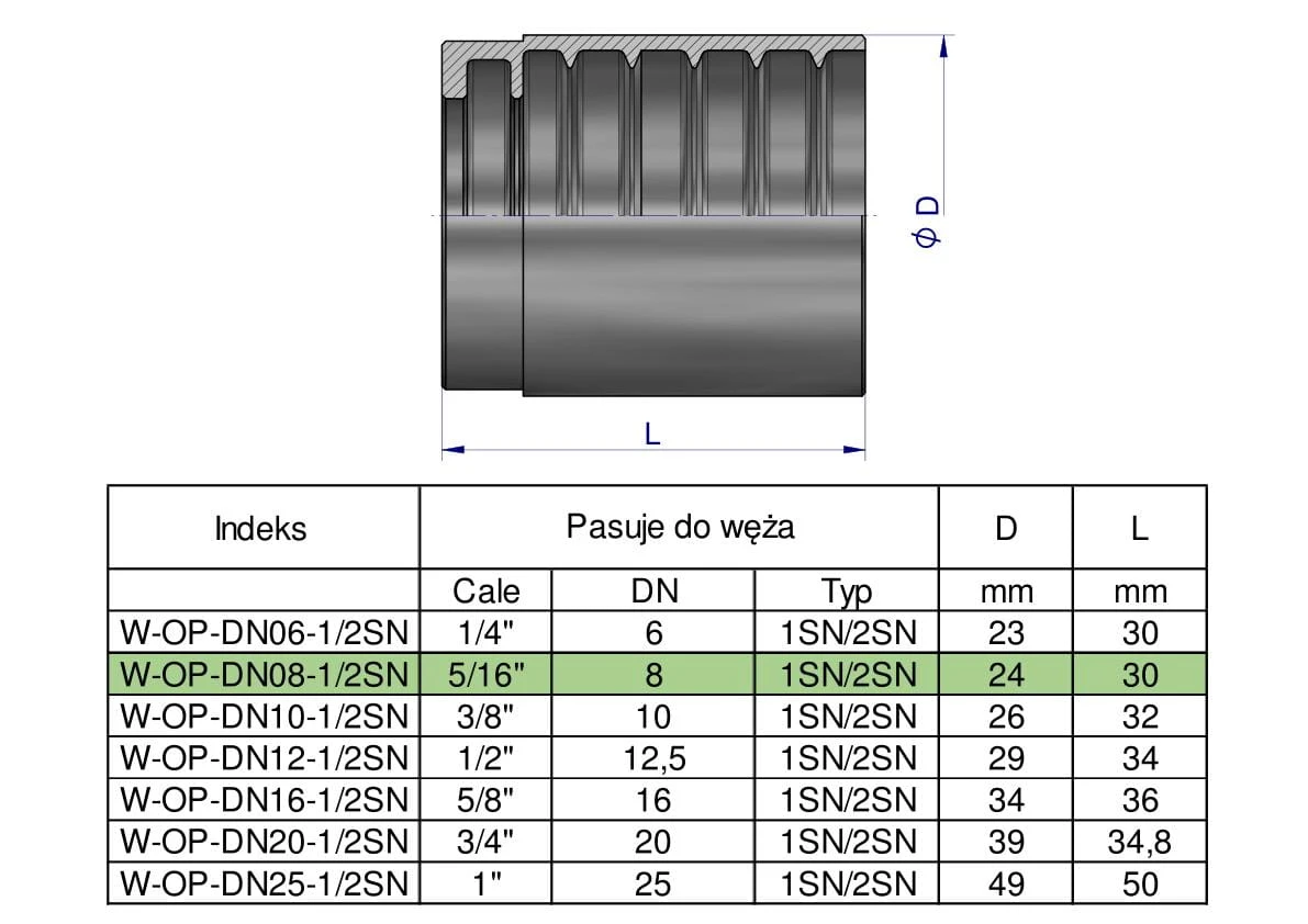 Tuleja (oprawka) uniwersalna do zakuwania węży DN08 1SN/2SN PERFECT-SMOOTH Waryński