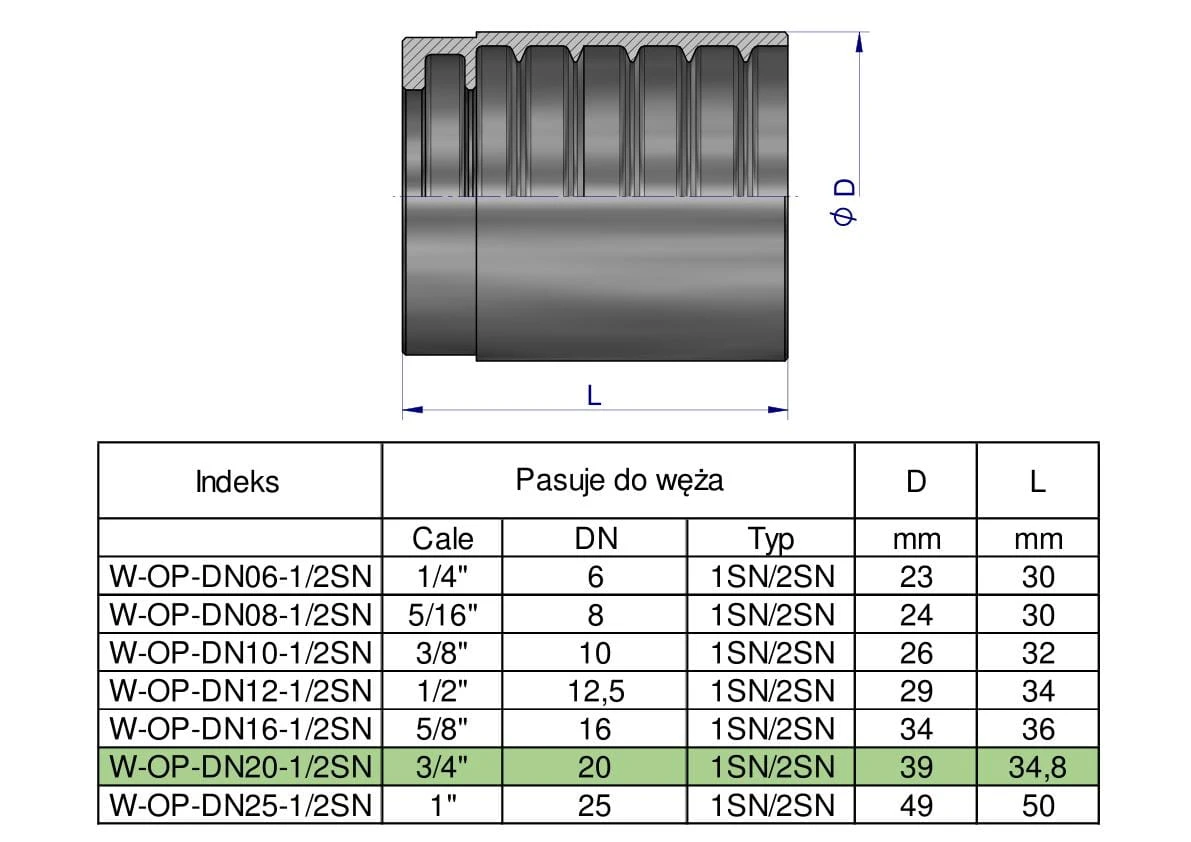 Tuleja (oprawka) uniwersalna do węży DN20 1SN/2SN PERFECT-SMOOTH Waryński ( sprzedawane po 10 )