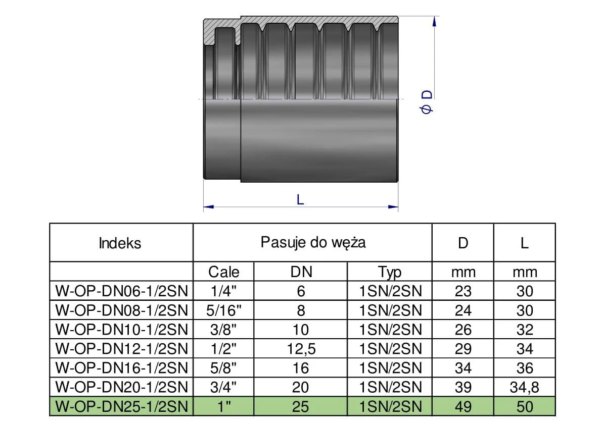 Tuleja (oprawka) uniwersalna do węży DN25 1SN/2SN PERFECT-SMOOTH Waryński ( sprzedawane po 10 )