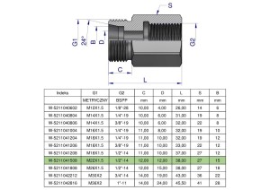 Tulejka różnicowa hydrauliczna AB M22x1.5 15L GZ x 1/2" BSP Waryński. Elementy złączne zostały zaprojektowane i wykonane zgodnie z obowiązującymi normami, które szczegółowo opisują wymagania jakościowe i wymiarowe. Są kompatybilne z elementami złącznymi innych renomowach producentów hydrauliki siłowej.