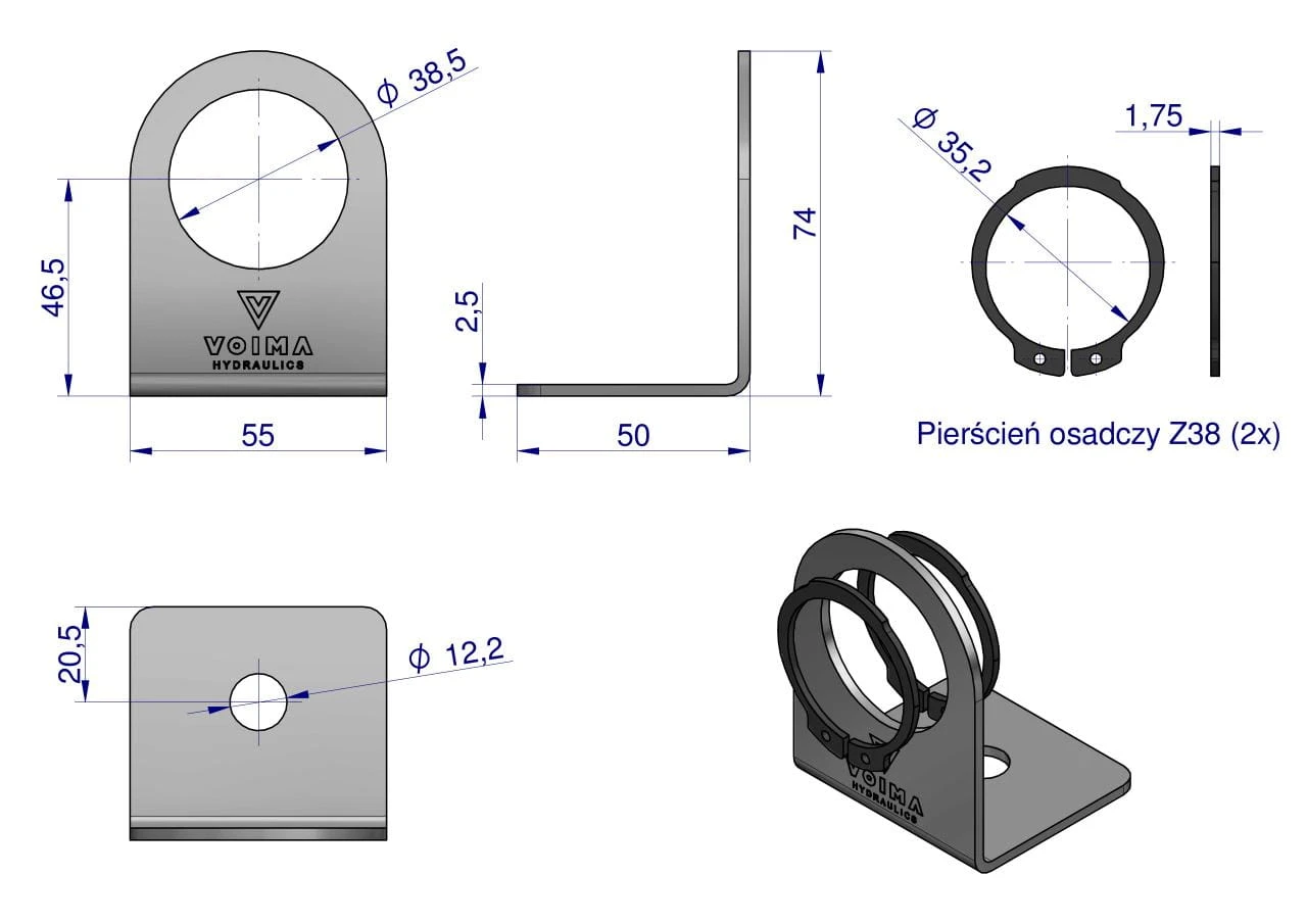 Uchwyt pojedynczy kompletny z pierścieniami segera dla szybkozłączy EURO Push-Pull VOIMA