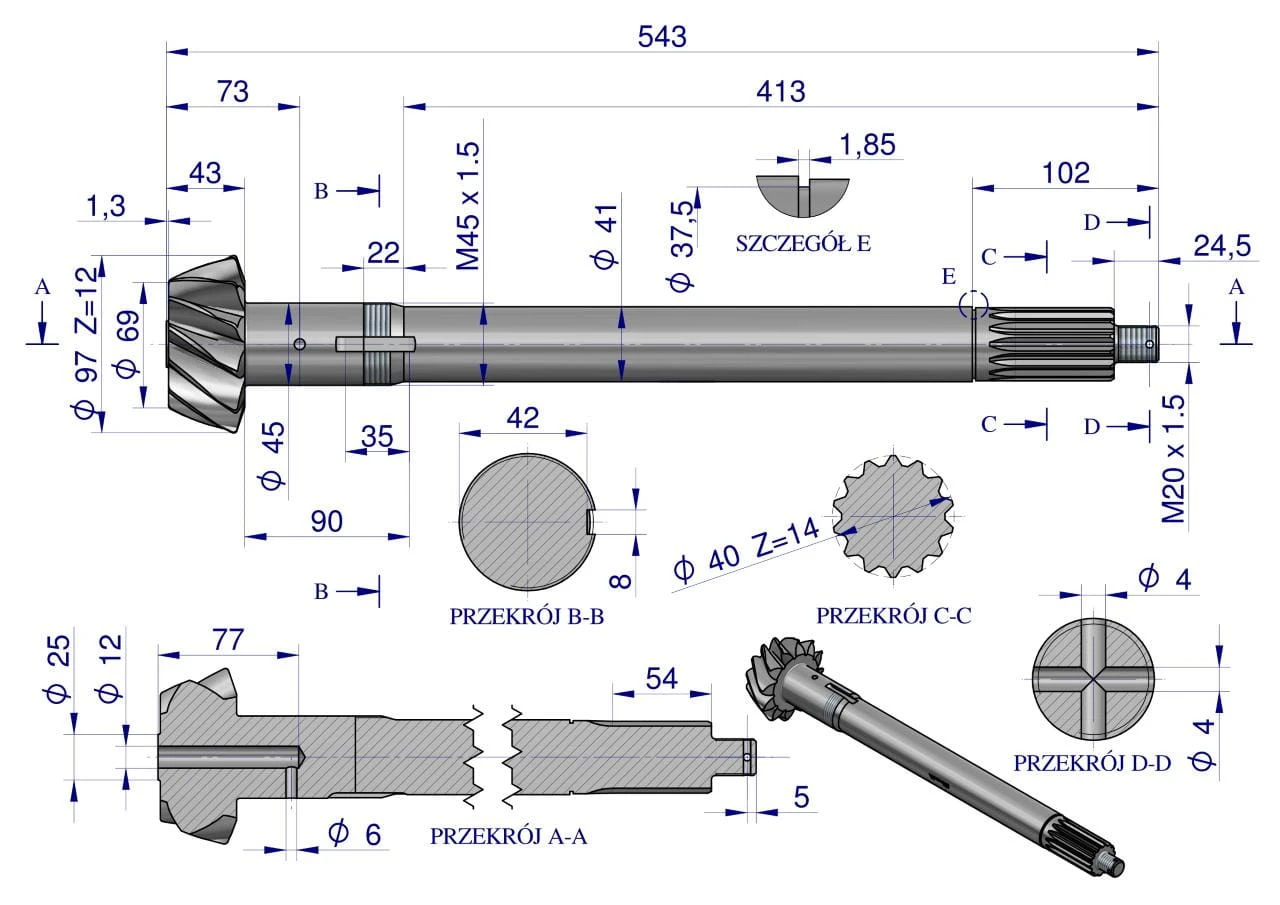 Wałek atakujący z kołem talerzowym C-385 śruby M12 88170989 WARYŃSKI