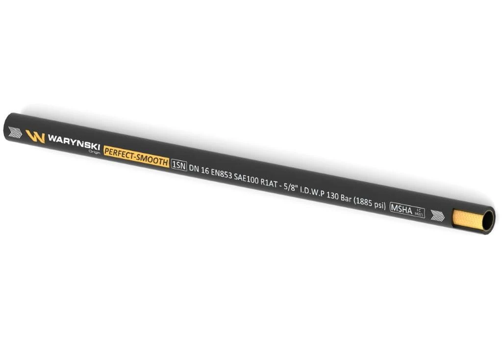 Wąż hydrauliczny o gładkiej wzmocnionej powierzchni do zakuwania PERFECT-SMOOTH 1SN DN16 1-oplotowy 130 Bar Waryński EN853 - elastyczny, wielofunkcyjny wąż wzmocniony pojedynczym oplotem z drutu stalowego.