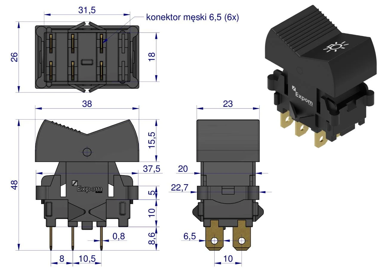 Włącznik Belarus wypadowy reflektora roboczego  EXPOM KWIDZYN eu