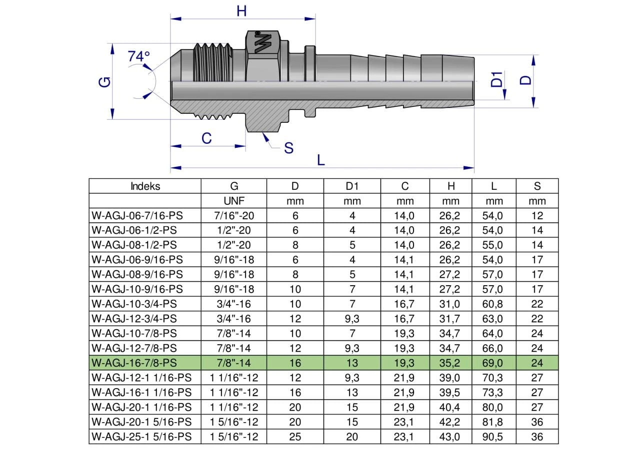 Zakucie hydrauliczne AGJ DN16 7/8"-14 UNF PREMIUM Waryński ( sprzedawane po 2 )