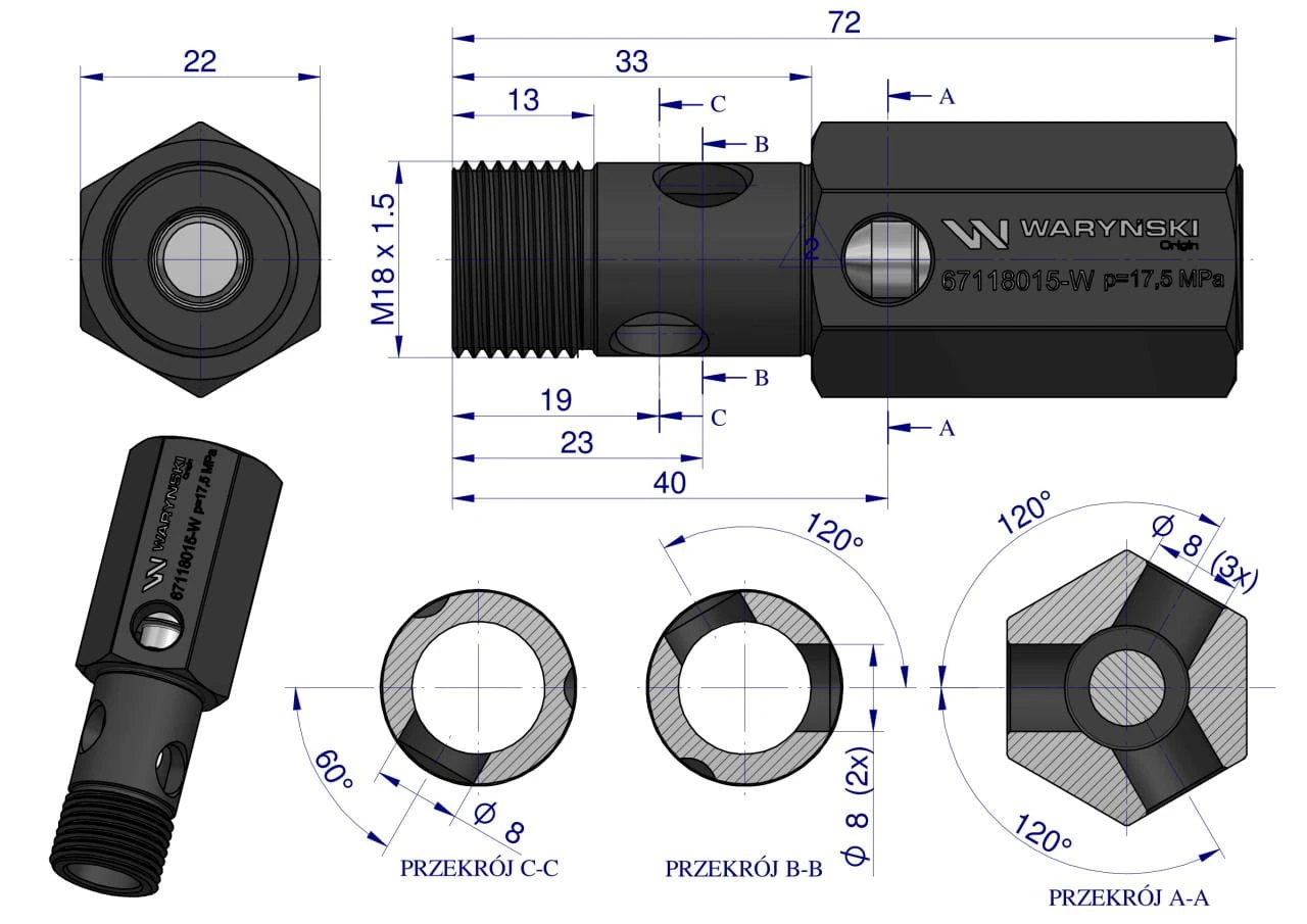 Zawór bezpieczeństwa cylindra do Zetora WARYŃSKI to gwarantowana niezawodna jakość produktu.Jest to ważny element wchodzący w skład układu hydrauliczneg podnośnika ,posiada 24 miesięczną gwarancję i trwałe oznaczenie marki .