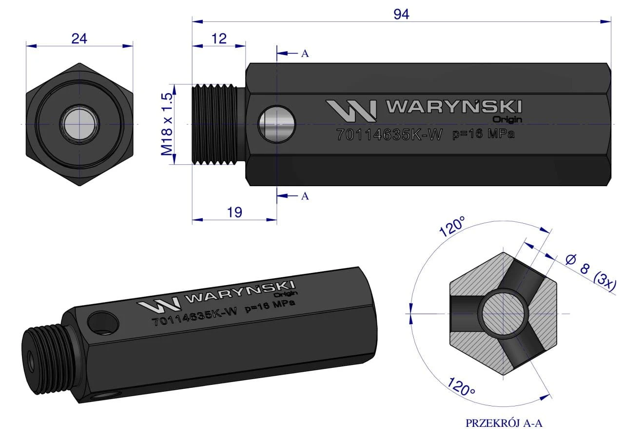 Zawór bezpieczeństwa pompy hydraulicznej krótki do Zetor WARYŃSKI